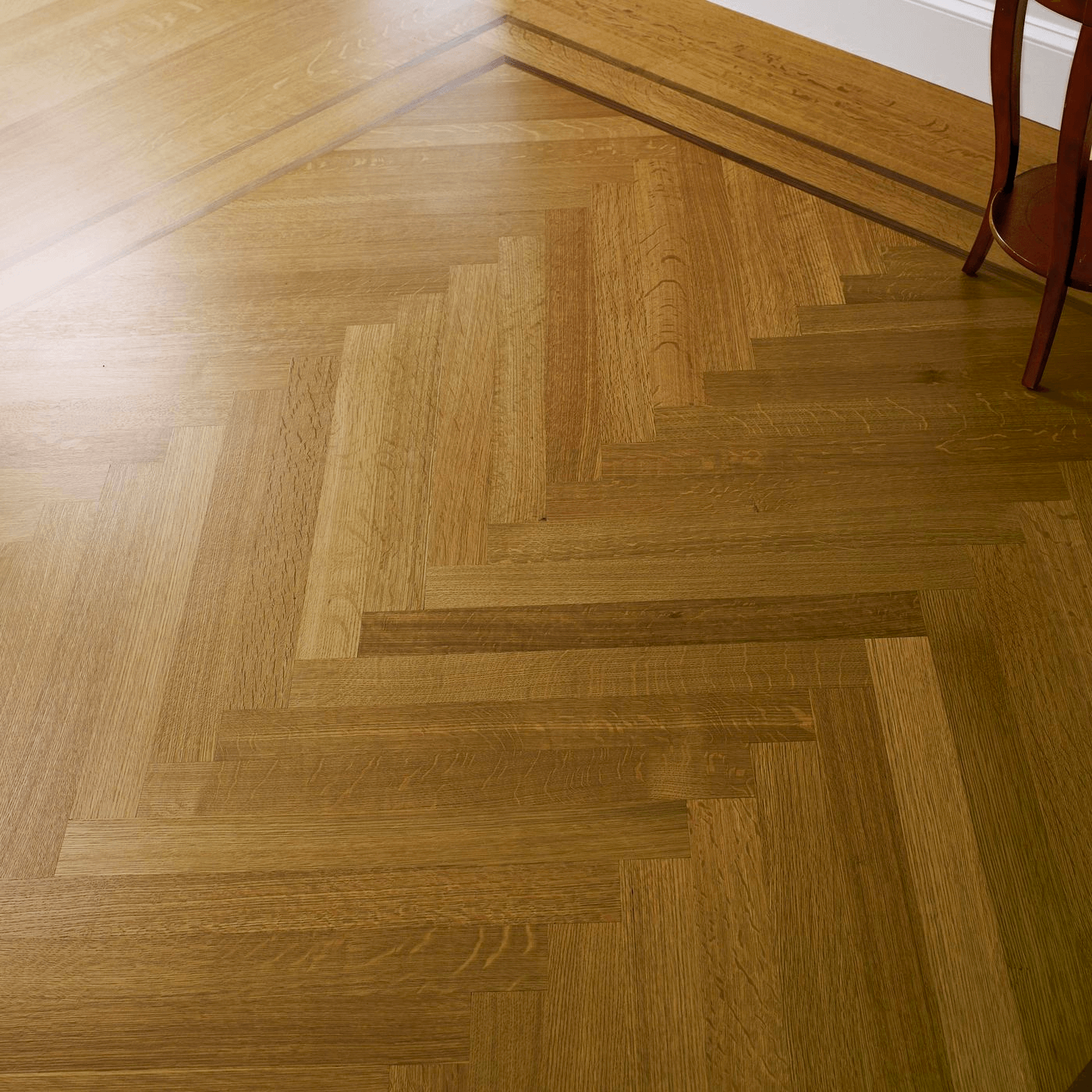 A pattern steeped in history and favored in contemporary luxury, the Herringbone installation is a testament to opulent flooring. Each plank is meticulously positioned against its neighbor, creating a mesmerizing zigzag pattern that offers exceptional dimensional stability. This design, once gracing the roads of Ancient Rome, now brings its timeless elegance to modern homes.